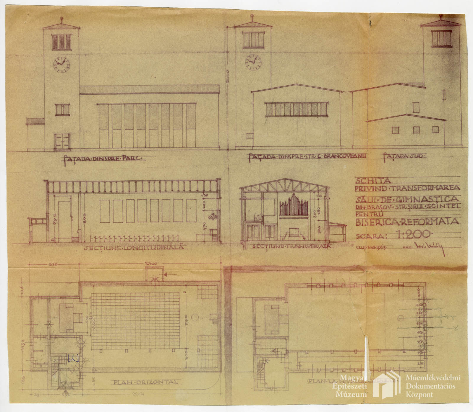 Református templom, Brassó PreviousNext Toggle image Alaprajzok, homlokzatok, metszetek Type of document Tervek Collection Magyar Építészeti Múzeum és Műemlékvédelmi Dokumentációs Központ Related work Református templom, Brassó Reference code MEM MDK 2020.1.139.5 Author Kós Károly Client Református Egyház Letöltés PreviousNext
