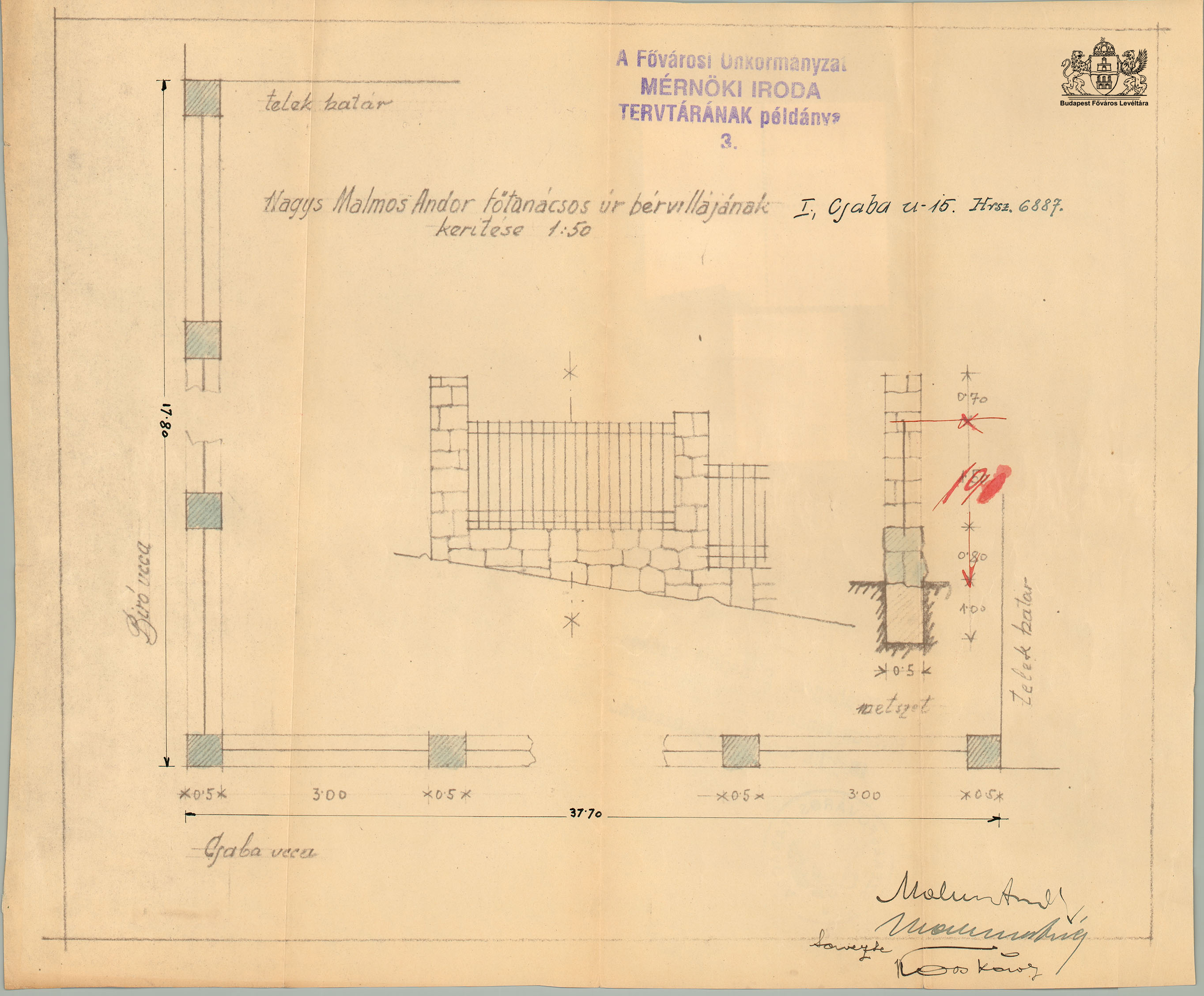 Malmos Andor lakóháza, Budapest PreviousNext Toggle image Kerítés terve Type of document Tervek Collection Budapest Főváros Levéltára Related work Malmos Andor lakóháza, Budapest Reference code HU BFL XV.17.d.329.6887.12 Author Kós Károly Client Malmos Andor Letöltés PreviousNext