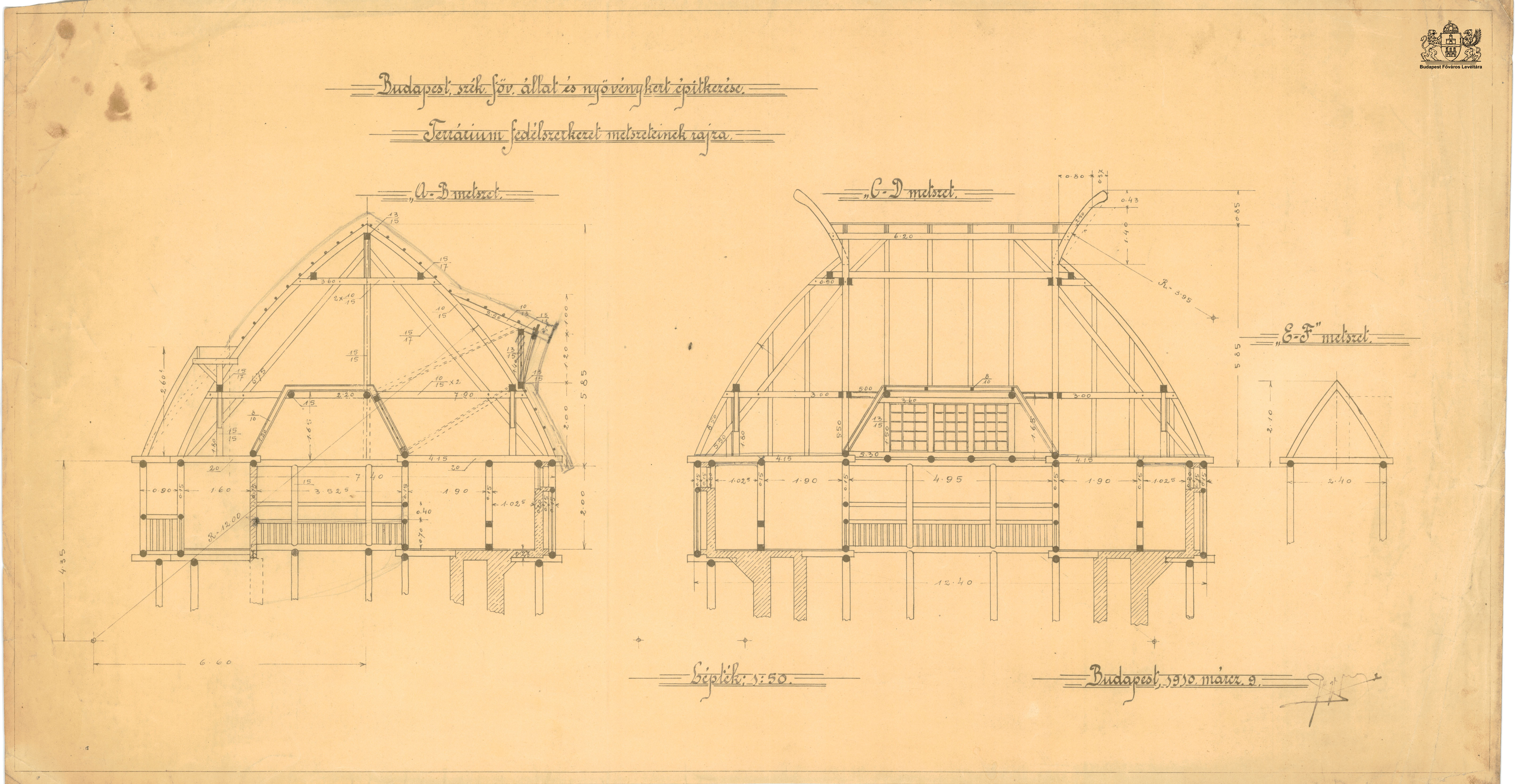 Krokodilház (Budapest Főváros Állat- és Növénykertje) PreviousNext Toggle image Fedélszerkezet metszetei Dokumentum típusa Tervek Keletkezés ideje 1910.03.09 Őrzési hely Budapest Főváros Levéltára Vonatkozó alkotás Krokodilház (Budapest Főváros Állat- és Növénykertje) Jelzet HU BFL XV.17.d.328.szor 1/82-3 Szerző Kós Károly Zrumeczky Dezső Építtető Budapest Székesfőváros Méretarány 1:50 Letöltés PreviousNext