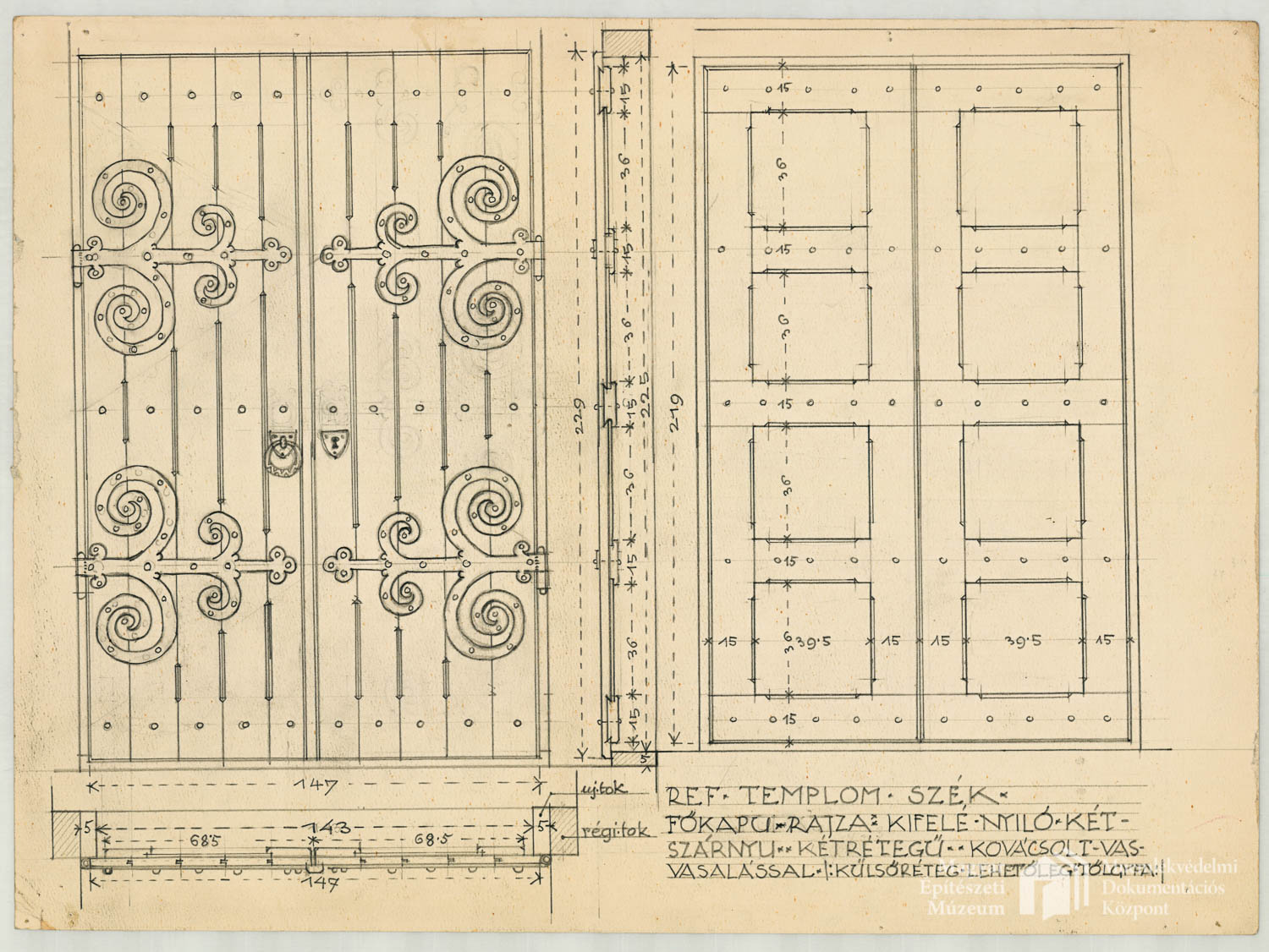 Református templom helyreállítása, Szék Previous Toggle image Főkapu rajza Dokumentum típusa Tervek Őrzési hely Magyar Építészeti Múzeum és Műemlékvédelmi Dokumentációs Központ Vonatkozó alkotás Református templom helyreállítása, Szék Jelzet MEM MDK 2020.1.53.19 Szerző Kós Károly Letöltés Previous