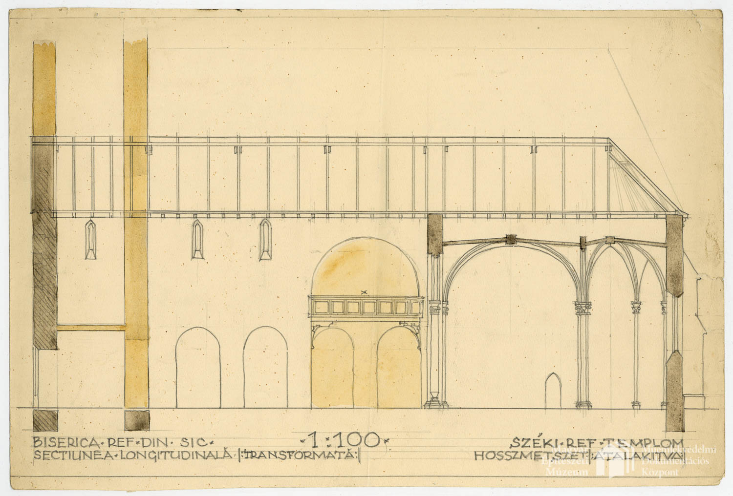 Református templom helyreállítása, Szék PreviousNext Toggle image Hosszmetszet átalakítva Dokumentum típusa Tervek Őrzési hely Magyar Építészeti Múzeum és Műemlékvédelmi Dokumentációs Központ Vonatkozó alkotás Református templom helyreállítása, Szék Jelzet MEM MDK 2020.1.53.15 Szerző Kós Károly Letöltés PreviousNext