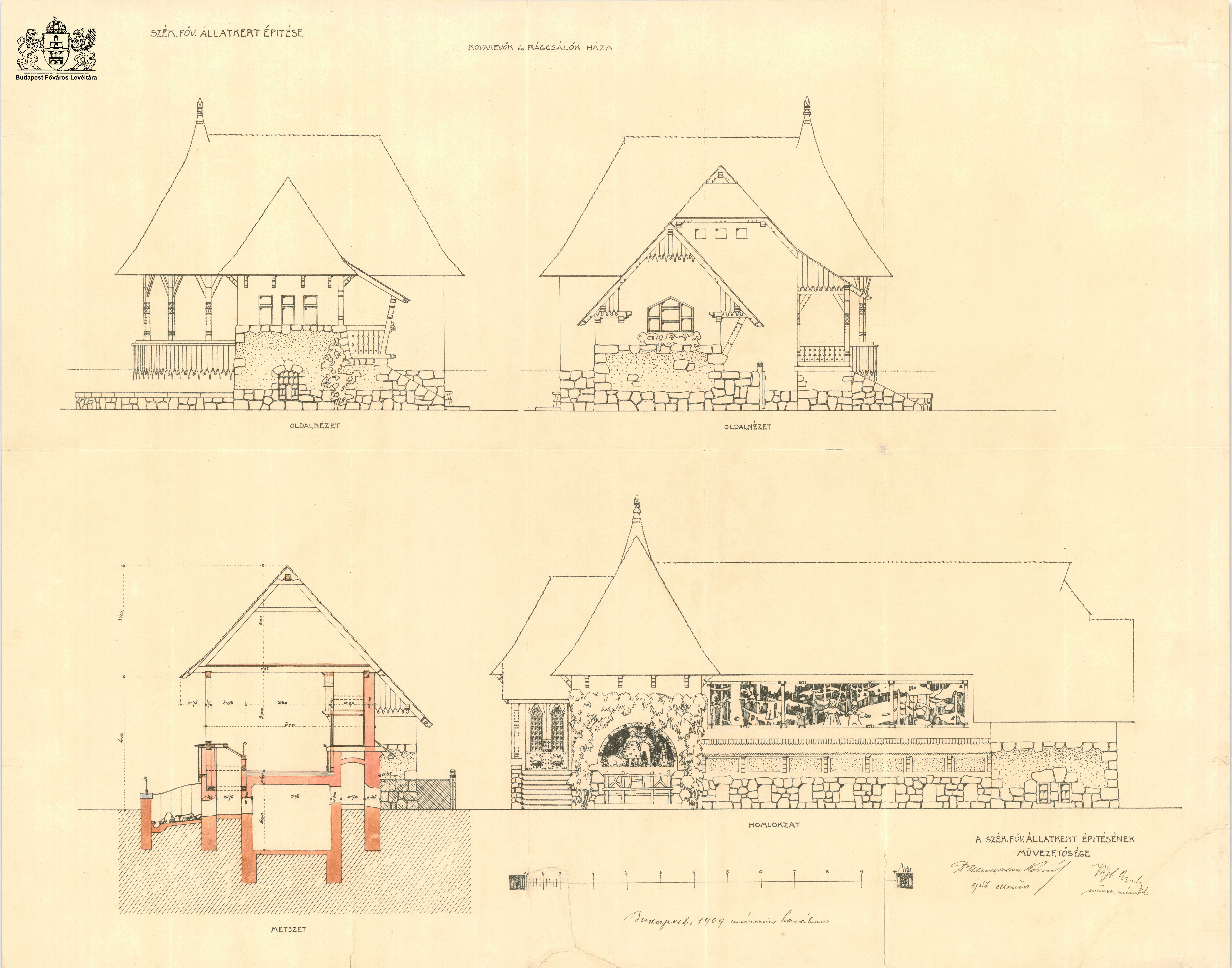 Kisrágcsálók háza, homlokzatok és metszet