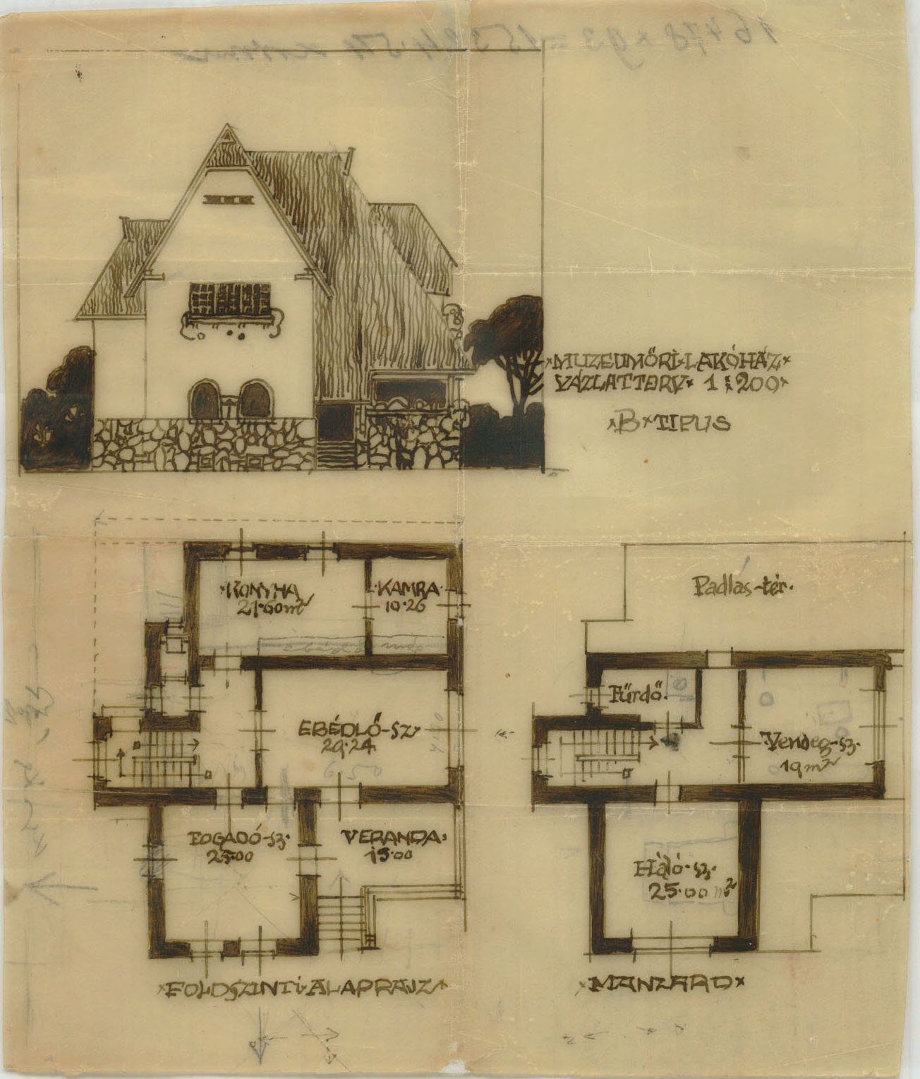 Múzeumőri lakóház (B típus) vázlatterve